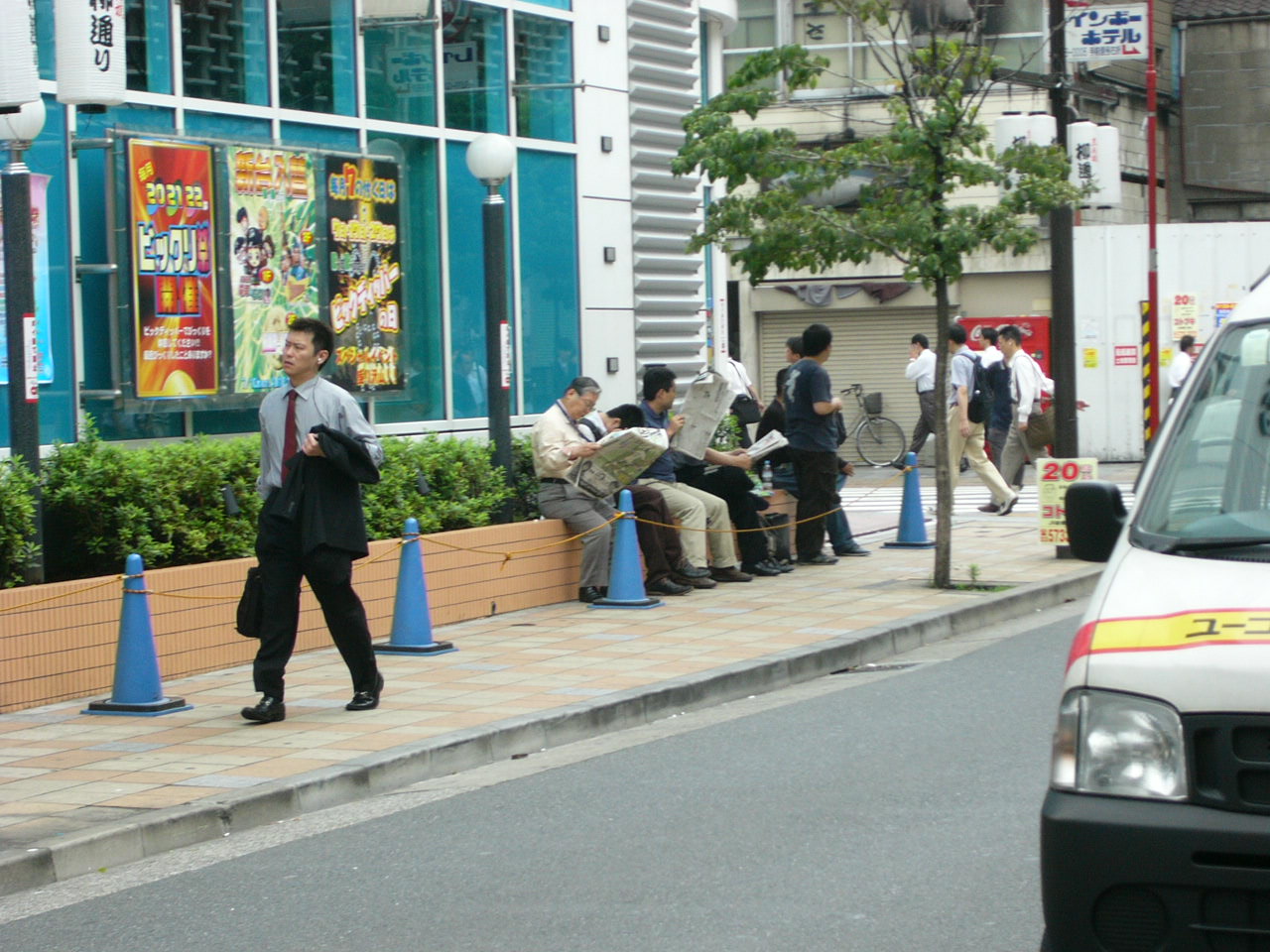 経済新聞を持ったリストラになったサラリーマンが見受けられる。